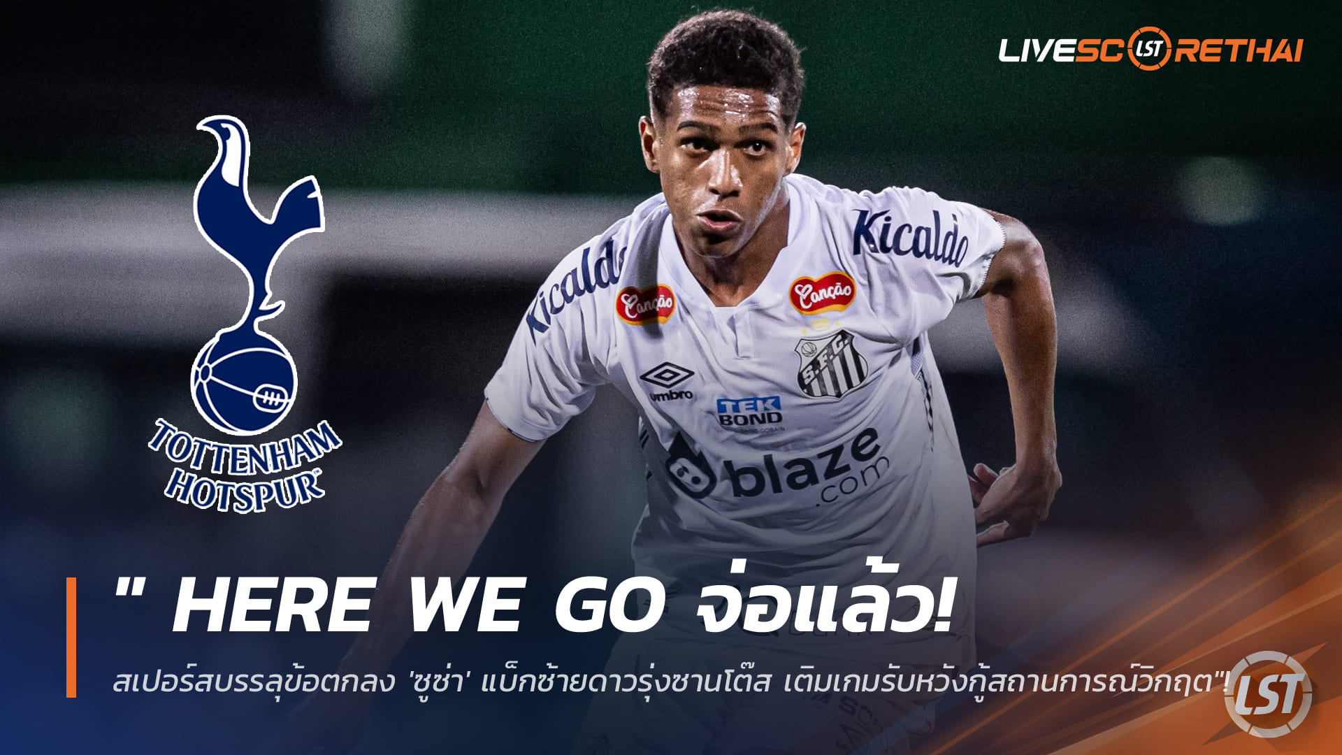 " Here We Go จ่อแล้ว! สเปอร์สบรรลุข้อตกลง 'ซูซ่า' แบ็กซ้ายดาวรุ่งซานโต๊ส เติมเกมรับหวังกู้สถานการณ์วิกฤต"!