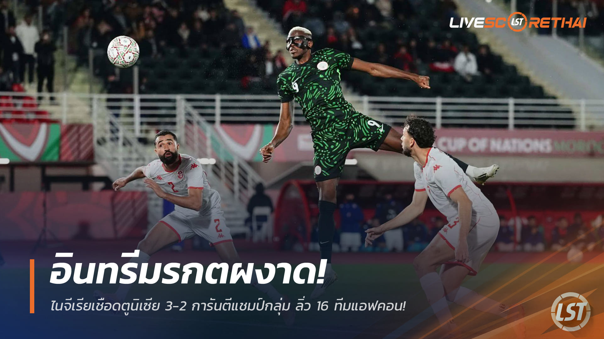 อินทรีมรกตผงาด! ไนจีเรียเชือดตูนิเซีย 3-2 การันตีแชมป์กลุ่ม ลิ่ว 16 ทีมแอฟคอน!