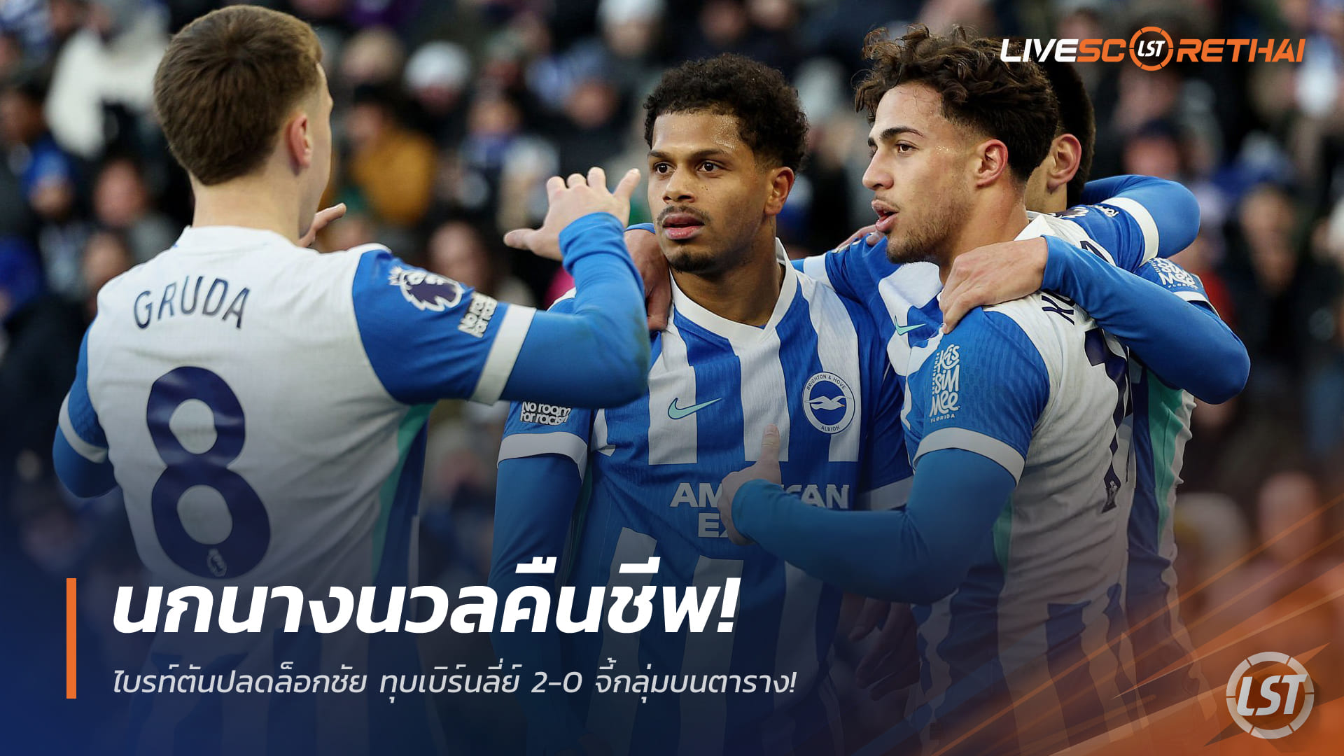 นกนางนวลคืนชีพ! ไบรท์ตันปลดล็อกชัย ทุบเบิร์นลี่ย์ 2-0 จี้กลุ่มบนตาราง!