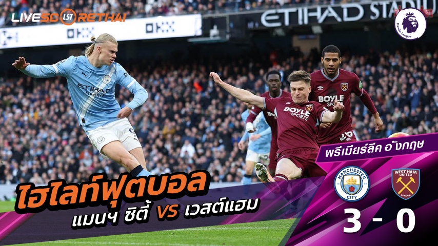 ดูฟรี ไฮไลท์ฟุตบอล พรีเมียร์ลีกอังกฤษ แมนเชสเตอร์ ซิตี้ VS เวสต์แฮม ที่ livescorethai4.tv