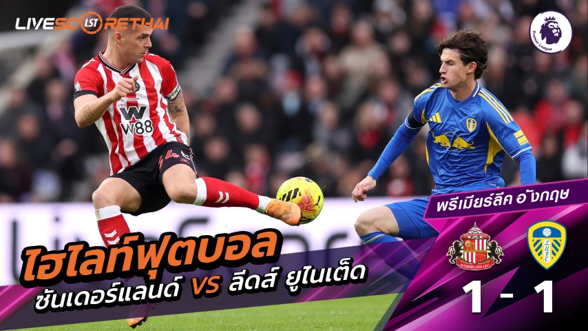 ดูฟรี ไฮไลท์ฟุตบอล พรีเมียร์ลีกอังกฤษ ซันเดอร์แลนด์ VS ลีดส์ยูไนเต็ด ที่ livescorethai4.tv