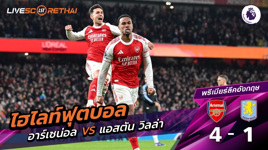 ดูฟรี ไฮไลท์ฟุตบอล พรีเมียร์ลีกอังกฤษ อาร์เซน่อล VS แอสตันวิลลา ที่ livescorethai4.tv