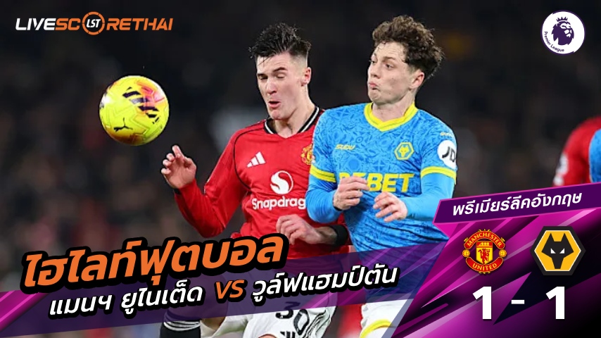 ดูฟรี ไฮไลท์ฟุตบอล พรีเมียร์ลีกอังกฤษ แมนเชสเตอร์ยูไนเต็ด VS วูล์ฟแฮมป์ตัน ที่ livescorethai4.tv
