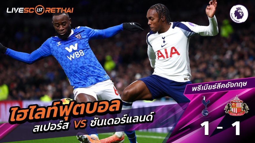 ดูฟรี ไฮไลท์ฟุตบอล พรีเมียร์ลีกอังกฤษ ท็อตแนม ฮ็อตสเปอร์ส VS ซันเดอร์แลนด์ ที่ livescorethai4.tv