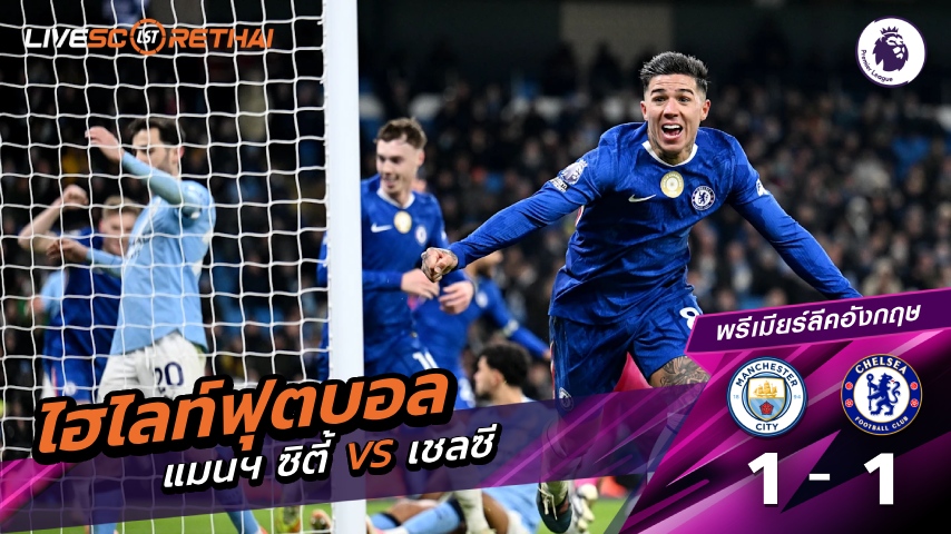 ดูฟรี ไฮไลท์ฟุตบอล พรีเมียร์ลีกอังกฤษ แมนเชสเตอร์ ซิตี้ VS เชลซี ที่ livescorethai4.tv
