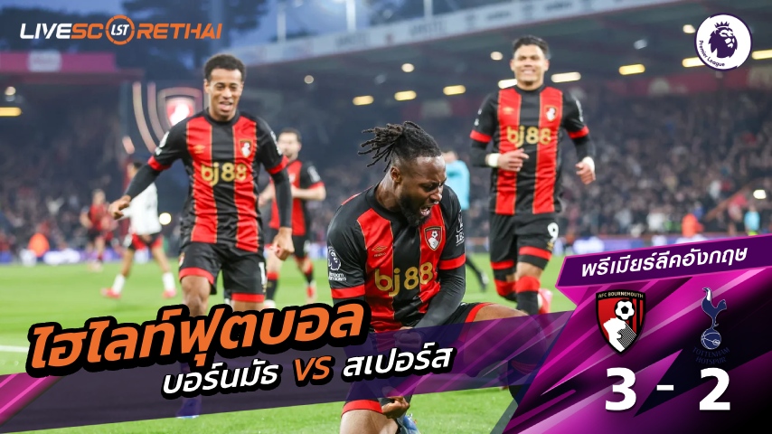 ดูฟรี ไฮไลท์ฟุตบอล พรีเมียร์ลีกอังกฤษ บอร์มัธ VS ท็อตแนม ฮ็อตสเปอร์ส ที่ livescorethai4.tv