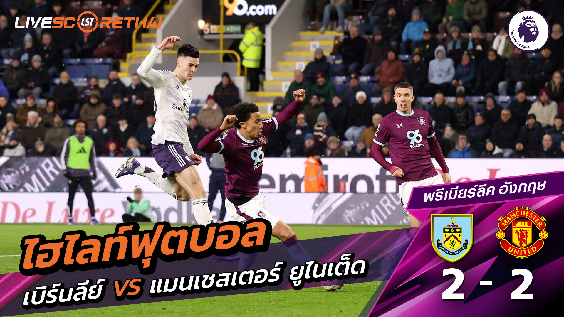 ดูฟรี ไฮไลท์ฟุตบอล พรีเมียร์ลีกอังกฤษ เบิร์นลีย์ VS แมนเชสเตอร์ยูไนเต็ด ที่ livescorethai4.tv